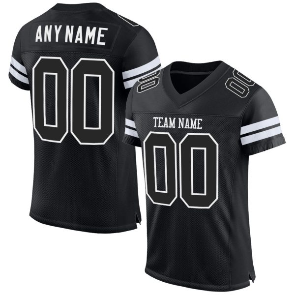 Custom Black Black-Gold Mesh Authentic Football Jersey